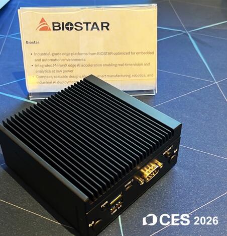 MemryX 于 CES 2026 展出先进的 Edge AI 解决方案。BIOSTAR映泰在本次 CES的展出整合 MemryX MX3 M.2 AI 加速器的 EdgeComp MU-N150 工业计算机系统,提供低功耗、实时 AI 推论效能,满足现代边缘应用需求。